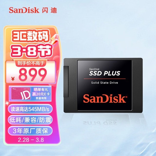 京东现在有闪迪固态硬盘加强版的优惠活动。此款商品售价原本为899元,但现在购买可享受满500元减20元的优惠券活动。此外,购买后晒单还可返20e卡,实付价可以低至859元。这是近期的好价。