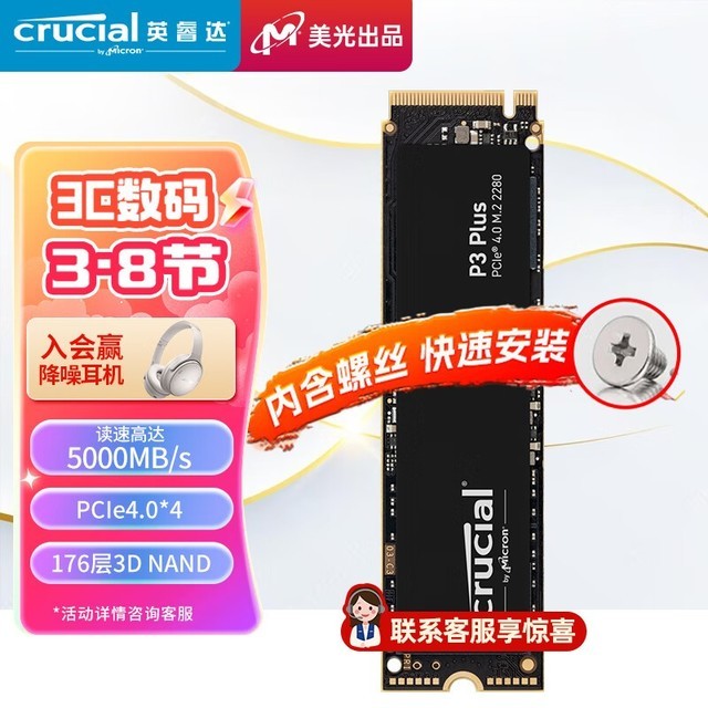 京东此款Crucial 英睿达 P3 Plus 固态硬盘1TB M.2接口,目前活动售价499元。下单领取满499减10元优惠券后,实付只需489元,性价比极高。
