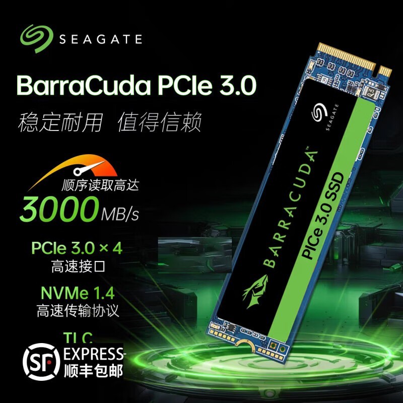 希捷 酷鱼 500G SSD固态硬盘 M.2接口 台式机笔记本电脑硬盘 高速低耗能 PCIE 1T-读3000MB/S-赠散热马甲