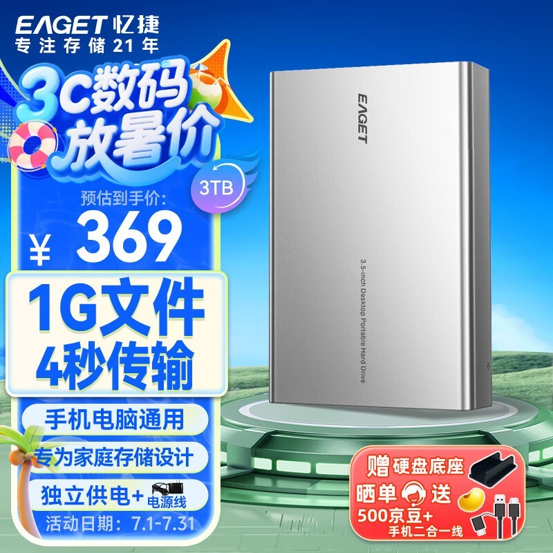忆捷 3TB移动硬盘桌面式存储Type-C3.1高速大容量存储 3.5英寸